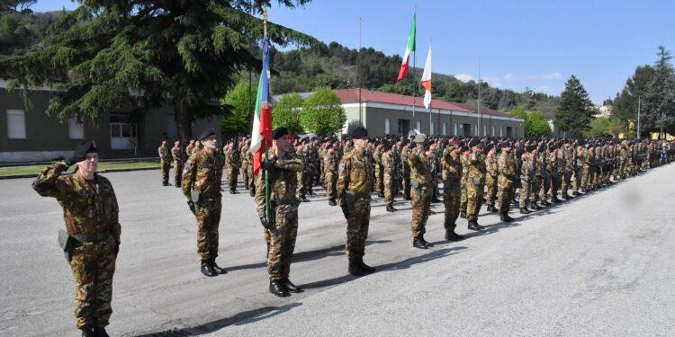 I giovani militari hanno sfilato con la mimetica digitale dell’Esercito e il berretto nero, inquadrati nello schieramento previsto per la cerimonia ufficiale.